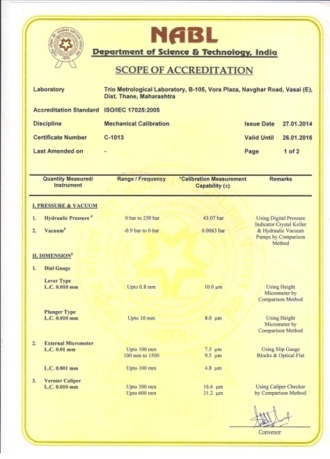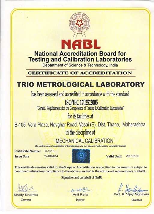 At Trio Metrological Laboratory, we use state-of-the-art instruments that enable quicker and accurate measurements. We boast a large selection of certified calibration services maintaining the highest standards. A combination of highly qualified professionals along with a vast pool of experience and expertise, help us retain customer satisfaction and drives exhilaration.